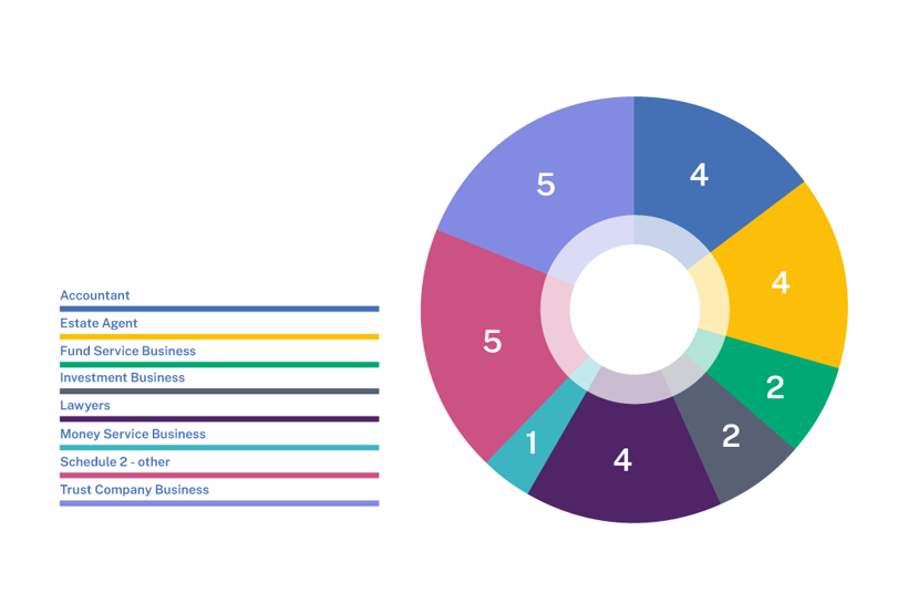 The sample of 27 relevant persons included regulated businesses from the following sectors: fund services business (FSB), investment business (IB) and trust company business (TCB). The sample also included the following Schedule 2 businesses: lawyers, estate agents, accountants and lenders. 26 responses were received with 3 respondents confirming they had no relevant employees.