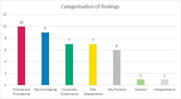 The findings from the thematic examination have been categorised into themes and these are shown in the graph below. No findings were identified at one of the Registered Persons examined.