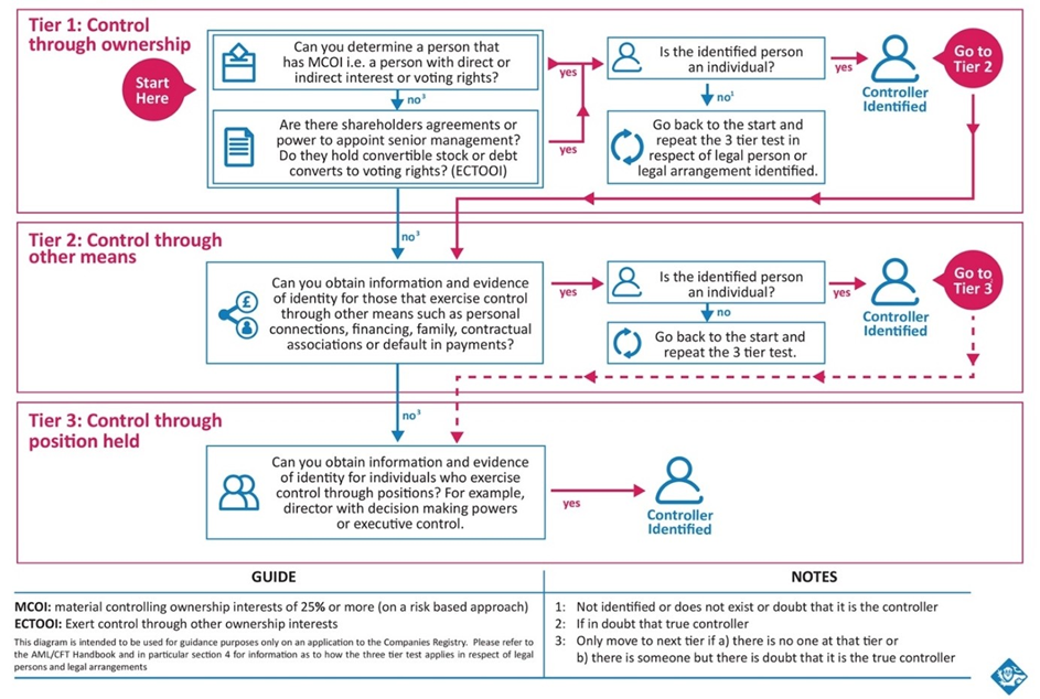 an individual identified under Tier 1 of the Three Tier Test (see section 2 below) should be recorded as a beneficial owner. You will need to assess whether they should also be identified as a controller. For example, a beneficial owner with 90% ownership is most likely to also be a controller.