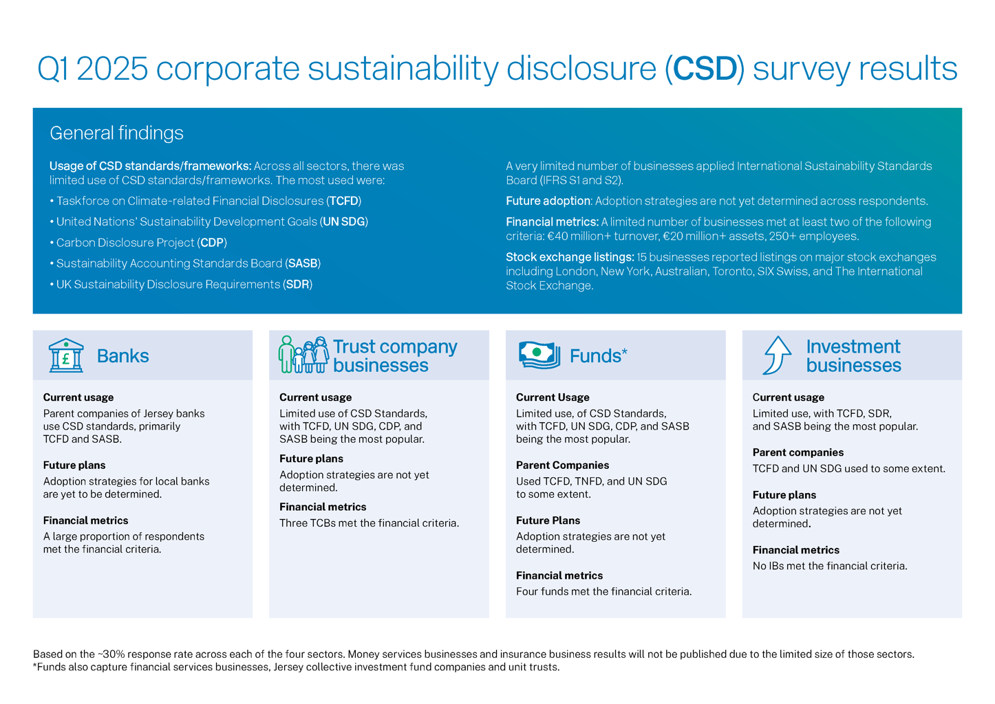 Between the 25 February and 6 March 2025, we conducted a short voluntary survey to help us better understand what corporate sustainability disclosure standards are currently being used in the financial services industry.