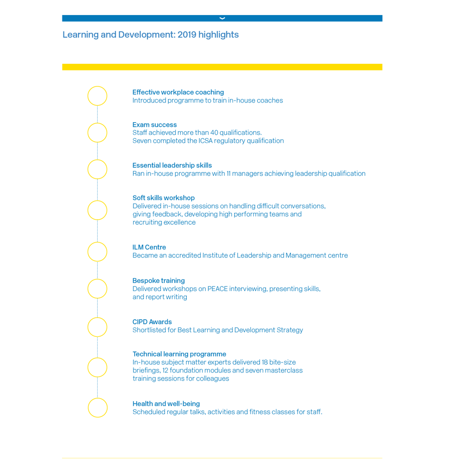 Over the course of 2019, 40 members of our staff successfully achieved qualifications. This included exam success for seven employees who achieved the new regulatory qualification, the International Certificate in Financial Services Regulation, awarded by ICSA: The Governance Institute.