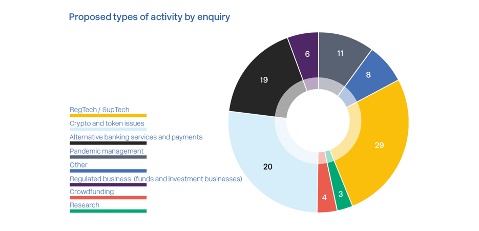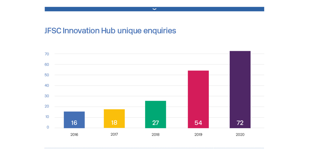 With businesses working from home in 2020, we saw a distinct move towards increased digitisation and automation. FinTech enquiries to our Innovation Hub increased by nearly a quarter, with us helping 74 businesses with their queries about developing innovation, navigating Jersey’s regulatory regime, and leveraging technology to meet their regulatory obligations.